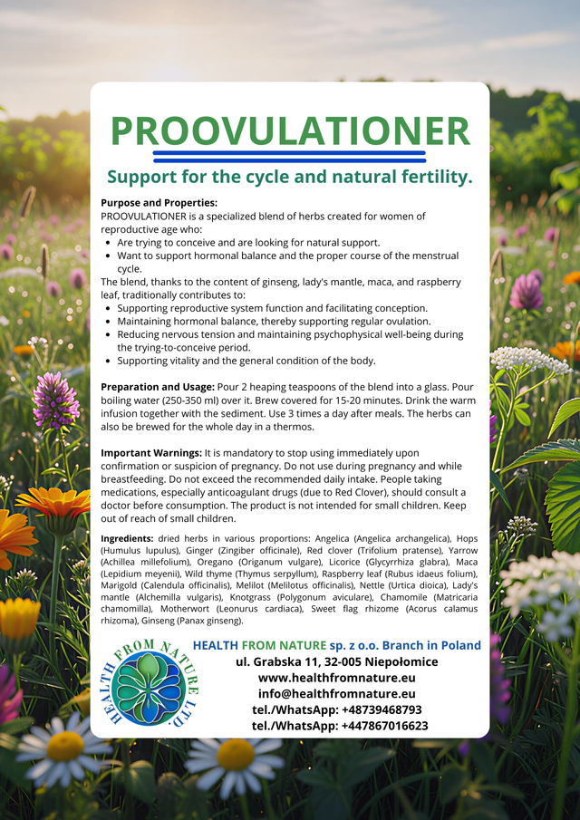 PROOVULATIONER to specjalistyczna mieszanka ziół stworzona dla kobiet w wieku rozrodczym, które: